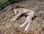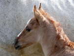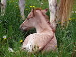 Je m'assois à côté d'elle, et prends ce petit sabot dans les mains. A chaque contraction, je l'accompagne, en accueillant un peu plus le poulain près de moi. La poche est percée, les grandes jambes interminables sortent et j'ai maintenant sa tête dans les mains. Ithaque me regarde, je l'encourage, et une dernière contraction expulse complètement le petit. Le poulain sort, et son premier sursaut de vie se fait dans mes bras…. Je suis remplie d'émotions, complètement troublée et émerveillée à la fois…